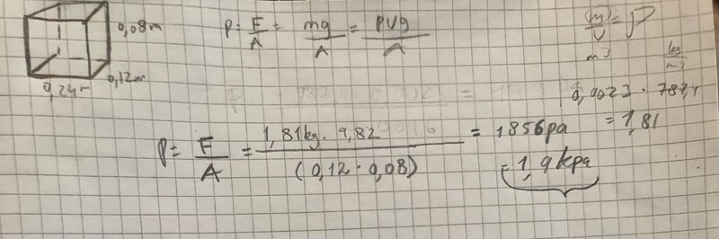 Figuren visar ett rätblock av järn. Man vill ställa järnblocket på ett underlag så att trycket mot underlaget blir så stort som möjligt. Bestäm detta största tryck.