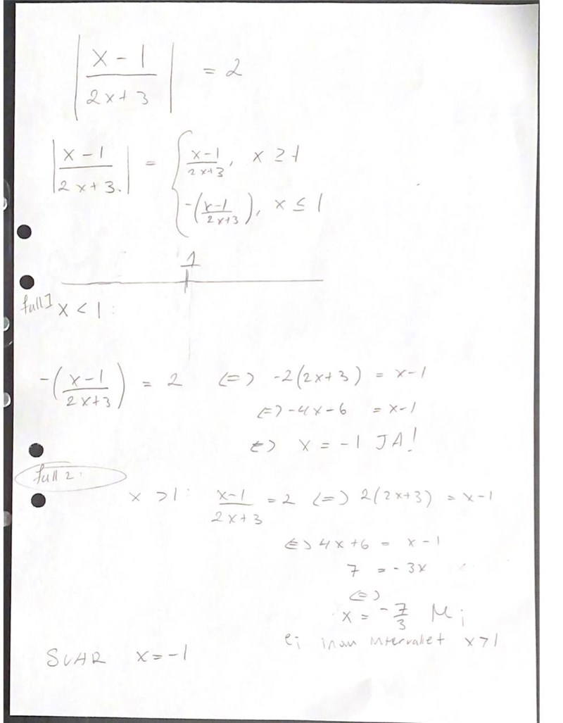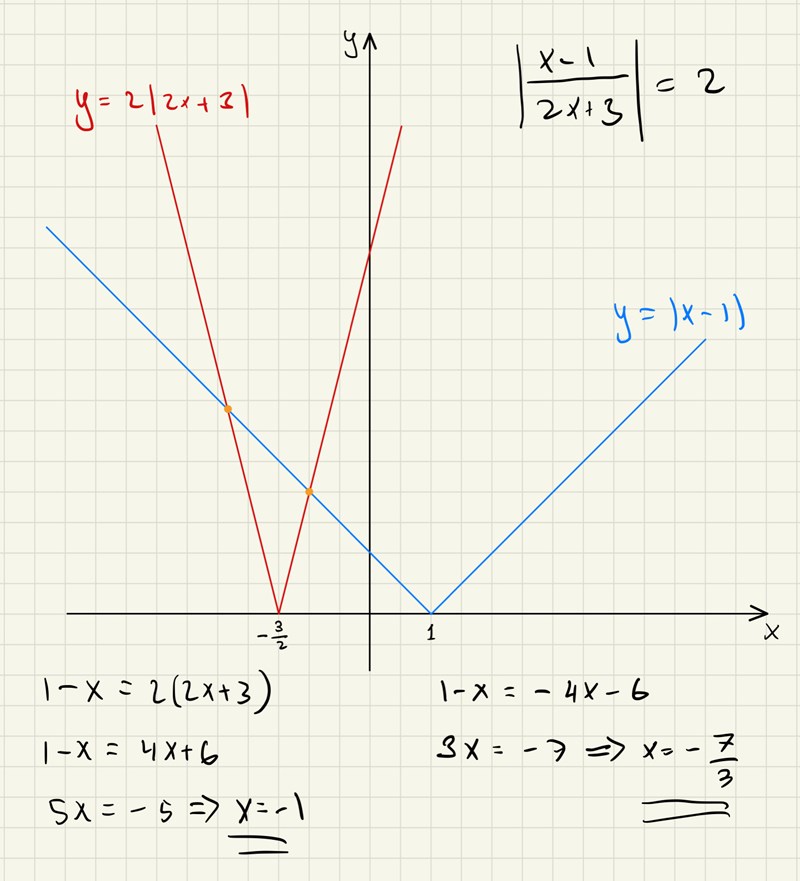 Löser man för de två olika fallen så får man x=-1 samt x=-7/3