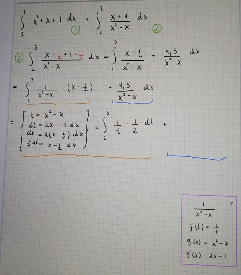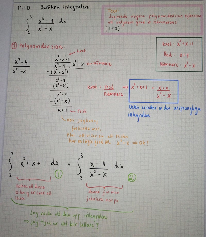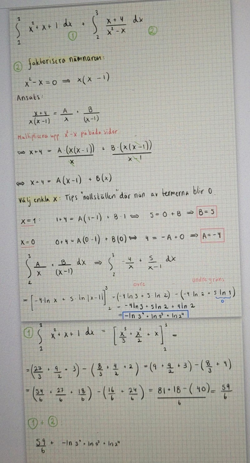 har integranden (x+4)/(x2-x) som går att partialbråksuppdela