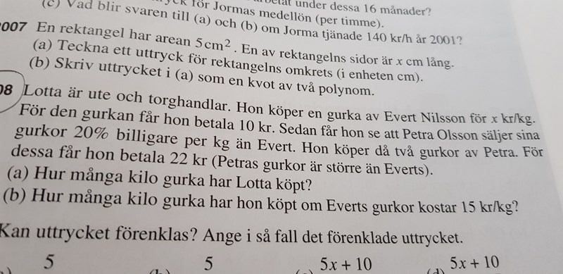 Jim är ute och handlar. Han köper en gurka i ICA för x kr/kg och får betala 10kr för den.