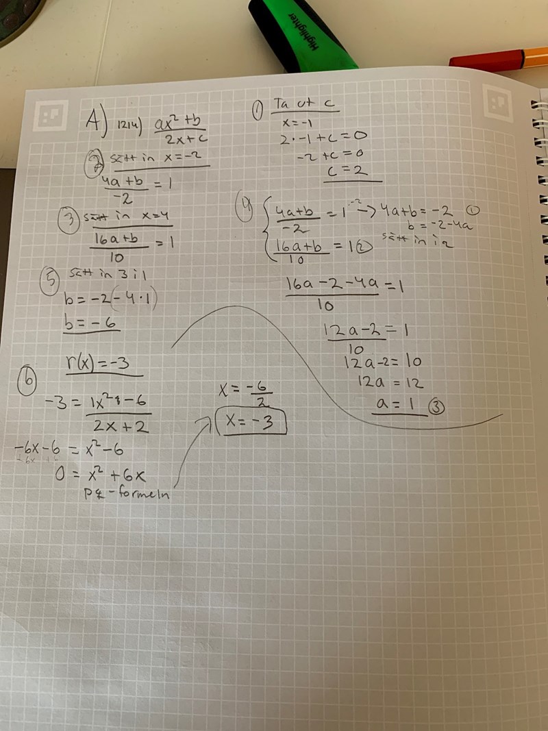 hej har också försökt med denna uppgift och kommit fram till a=1 och b= -6. så långt ok.