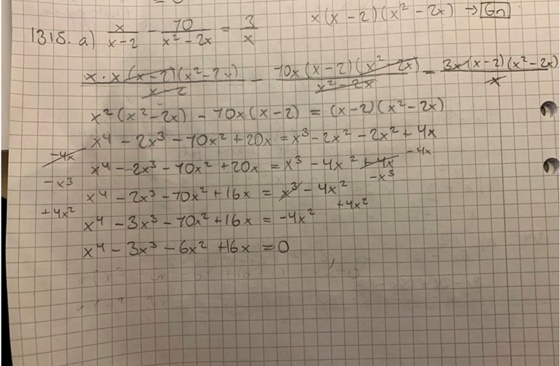 Jag tror det är en bra idé att först multiplicera allt med x och sedan allt med x-2.