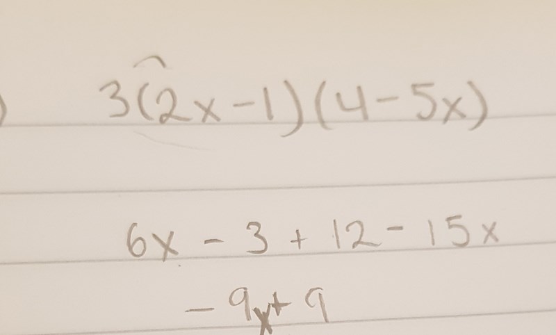 Du har satt ett +-tecken mellan parenteserna men som du skrivit så är det * mellan parenteserna och då kan du börja som du gjort att multiplicera in 3:an i första parentesen men inte i andra. Sen får du multiplicera parenteserna med varandra.