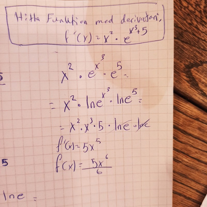 ansåg då att om man hade (1/3)*e^((x^3)+5), fick man derivatan som var den eftersökta