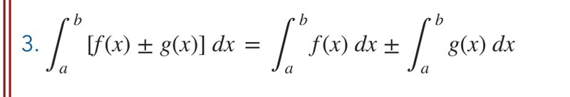 Det de menar är att om man skall räkna ut integralen av en funktion, och denna funktion kan uttryckas som summan av två andra funktioner, kan man även räkna ut detta genom att ta integralen av den ena beståndsfunktionen plus integralen av den andra beståndsfunktionen.