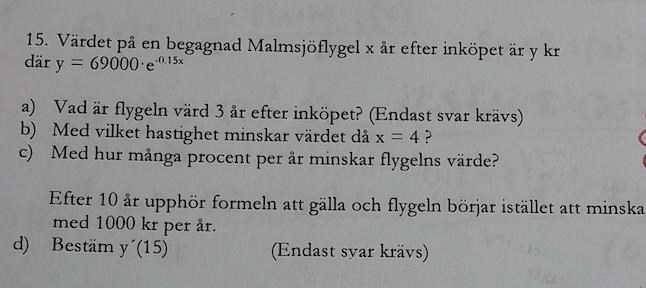 Stämmer det att y'(15) = 1000 eftersom den minskar med 1000 varje år? (uppgift d)