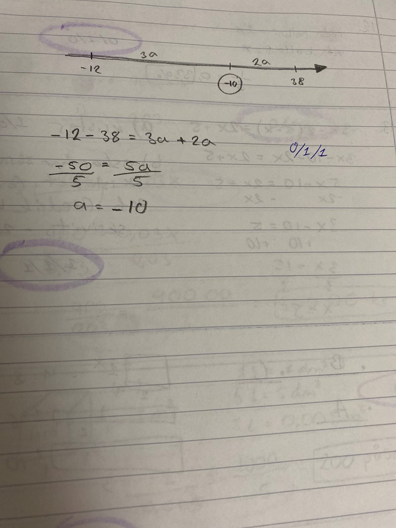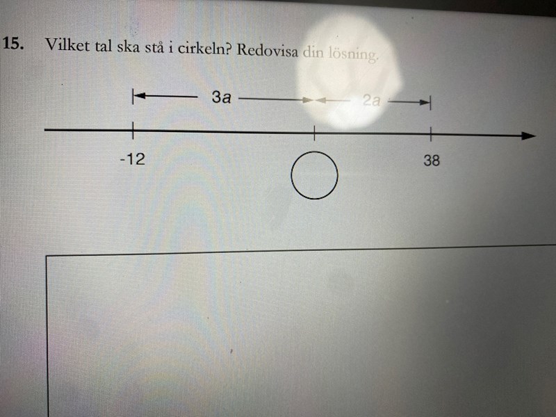 Du kan lösa problemet på två sätt, antingen genom att addera 3a till -12 eller subtrahera 2a från 38. Vad kommer du fram till i de båda fallen?