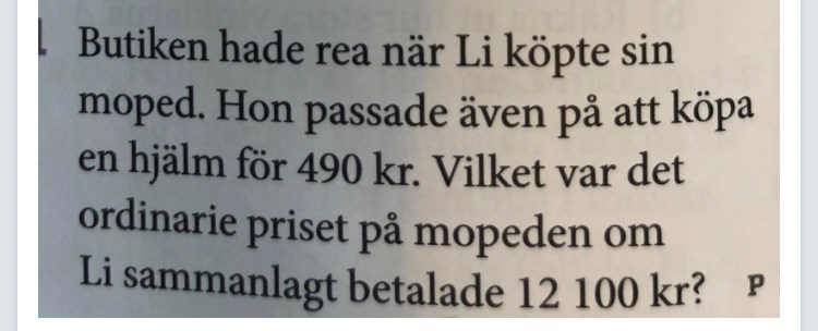 upg 2 är du på rätt väg. Du har tagit fram priset hon betalat (i detta fall behöver man ju inte använda en ekvation men funkar absolut)