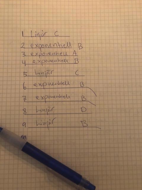 frågan är man dessa påståenden är en linjär eller exponentiell funktion samt paras ihop med dem ritade graferna (bifogar bild)
