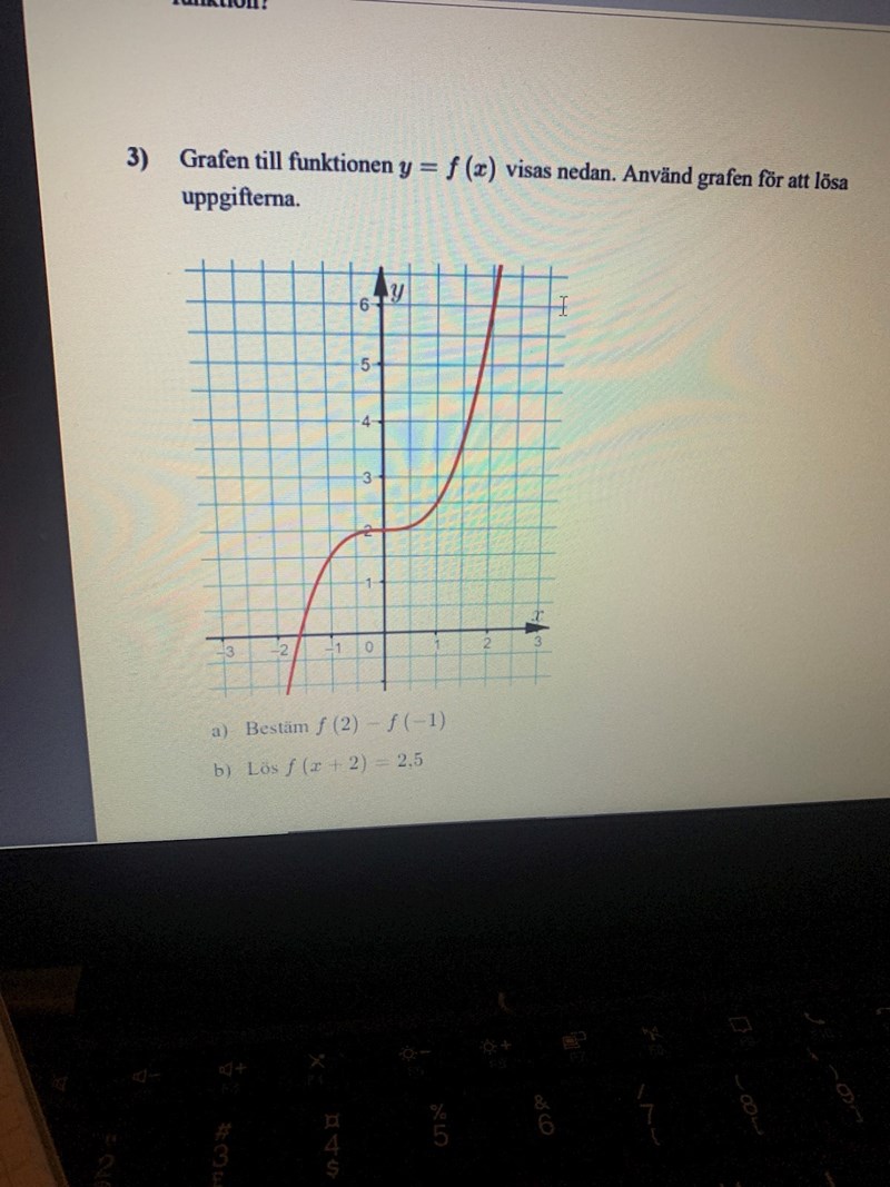 På uppgift b, så utgick jag från att y är 2,5 och på den punkten så är x=1. Sen så gjorde jag ekvationen (x+2)=1 och i de fallet så måste x vara -1. men jag är lite osäker oxh vet it om jag har rätt..så kan nån snälla säga ifall jag gjort rätt eller inte