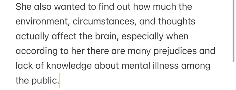Especially when, according to her, there are many prejudices and lack of knowledge about mental illness among the public.