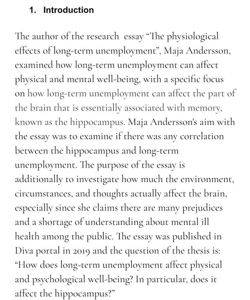 Jag ska sammanfatta en akademisk uppsats som handlar om hur långtids arbetslöshet kan påverka hjärnan. Jag läser Engelska7
