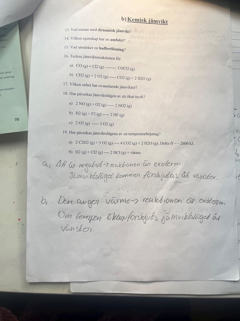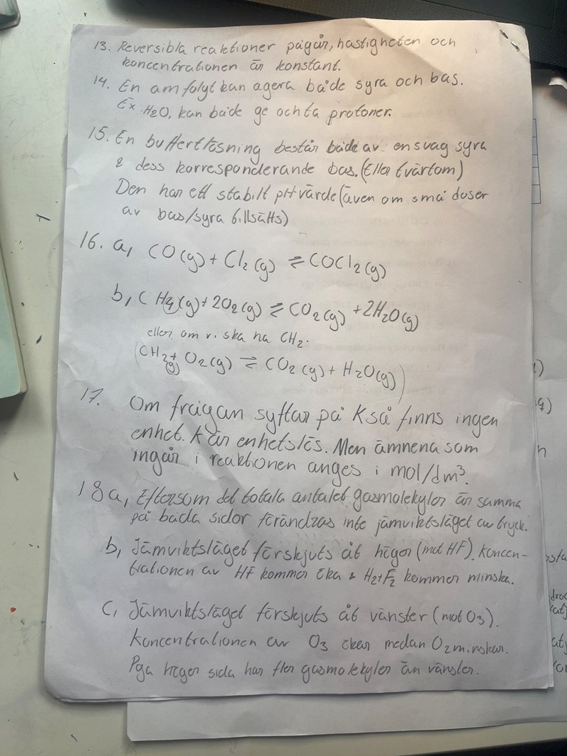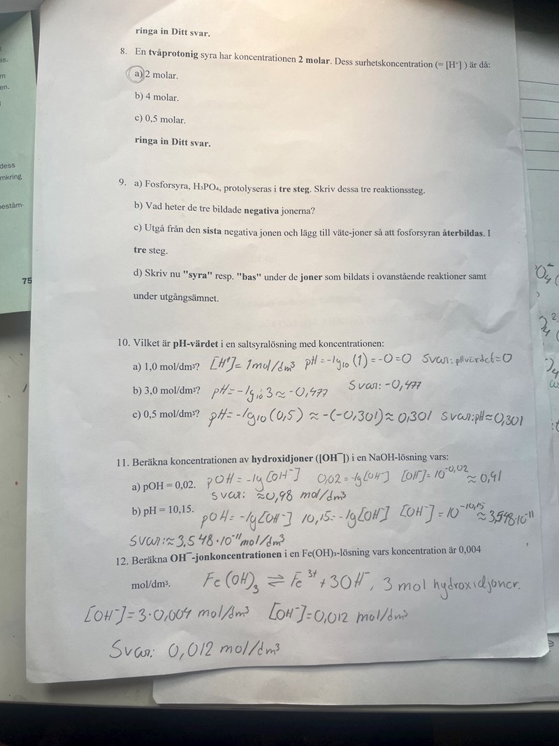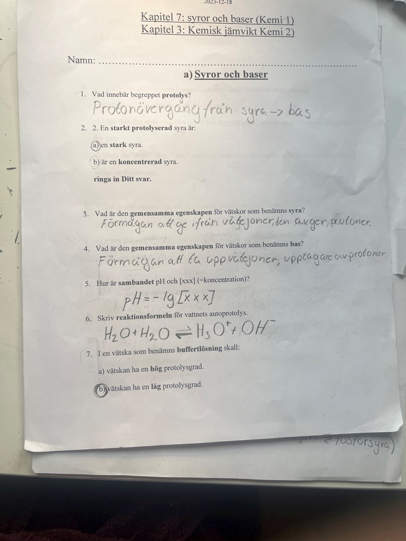 Hej! Stencil i kemi 1 och 2, syror och baser samt kemisk jämvikt. Har någon lust att koll om den är rätt? Tack på förhand!