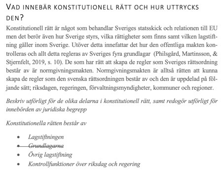 Jag skulle behöva lite hjälp med en fråga. Läser Rätten och samhället via Hermods och har fastnat på första frågan i första uppdraget.