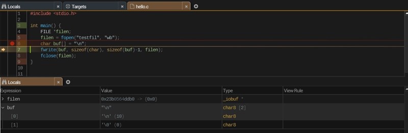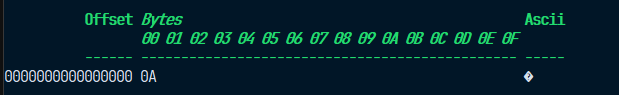 buf innehåller alltså bara 2 bytes, {0A,00} (nollavslutad sträng). Vi skriver bara 1 element 1 byte stort.