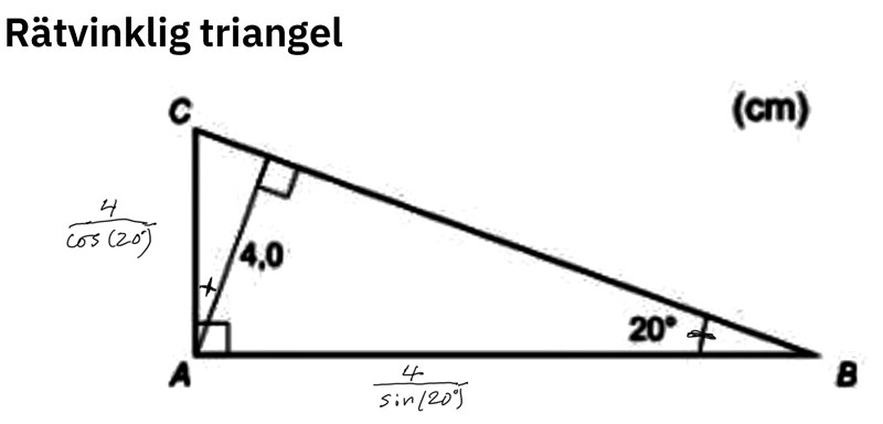 - Alltså är vinkel BCA 180° - 20° - 90° = 70°.