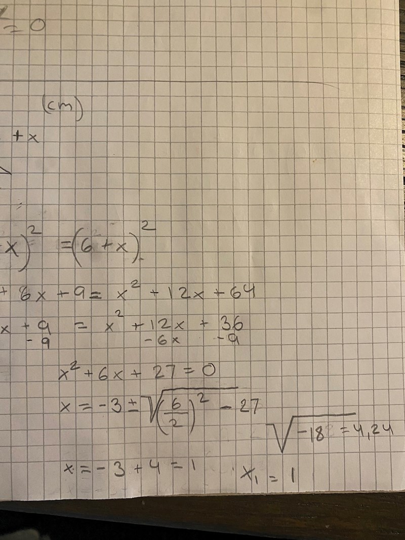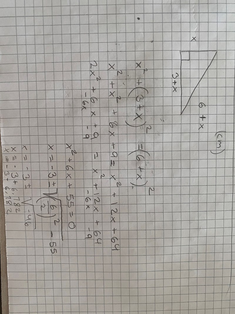 Kan denna lösning stämma? Kan ej ta -3-4 eftersom det blir minus och X i en rätvinklig triangel kan ju ej ha minus.