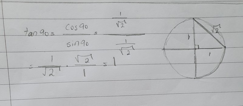 tan(90)= cos(90)/ sin(90)--------> = 1