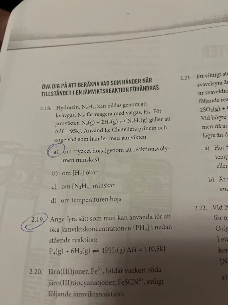 Hej, jag förstår inte varför reaktionen gör åt höger. Delta H säger ju mig att reaktionen är exoterm så om jag då hettar upp blandningen, borde den inte då gå åt vänster? Det är delfråga d