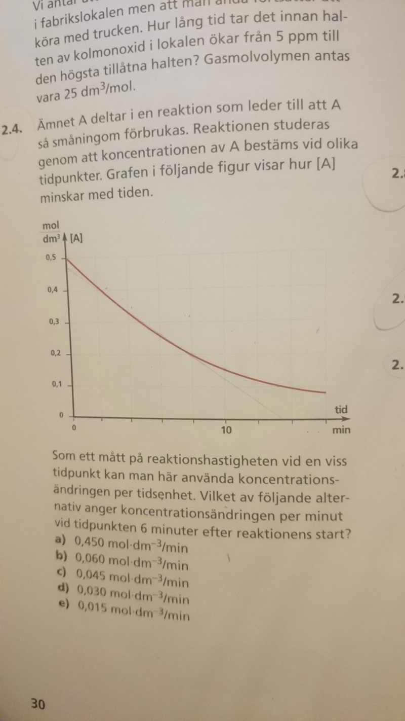 Reaktions hastighet, vad är koncentrations ändringen enligt diagrammet
