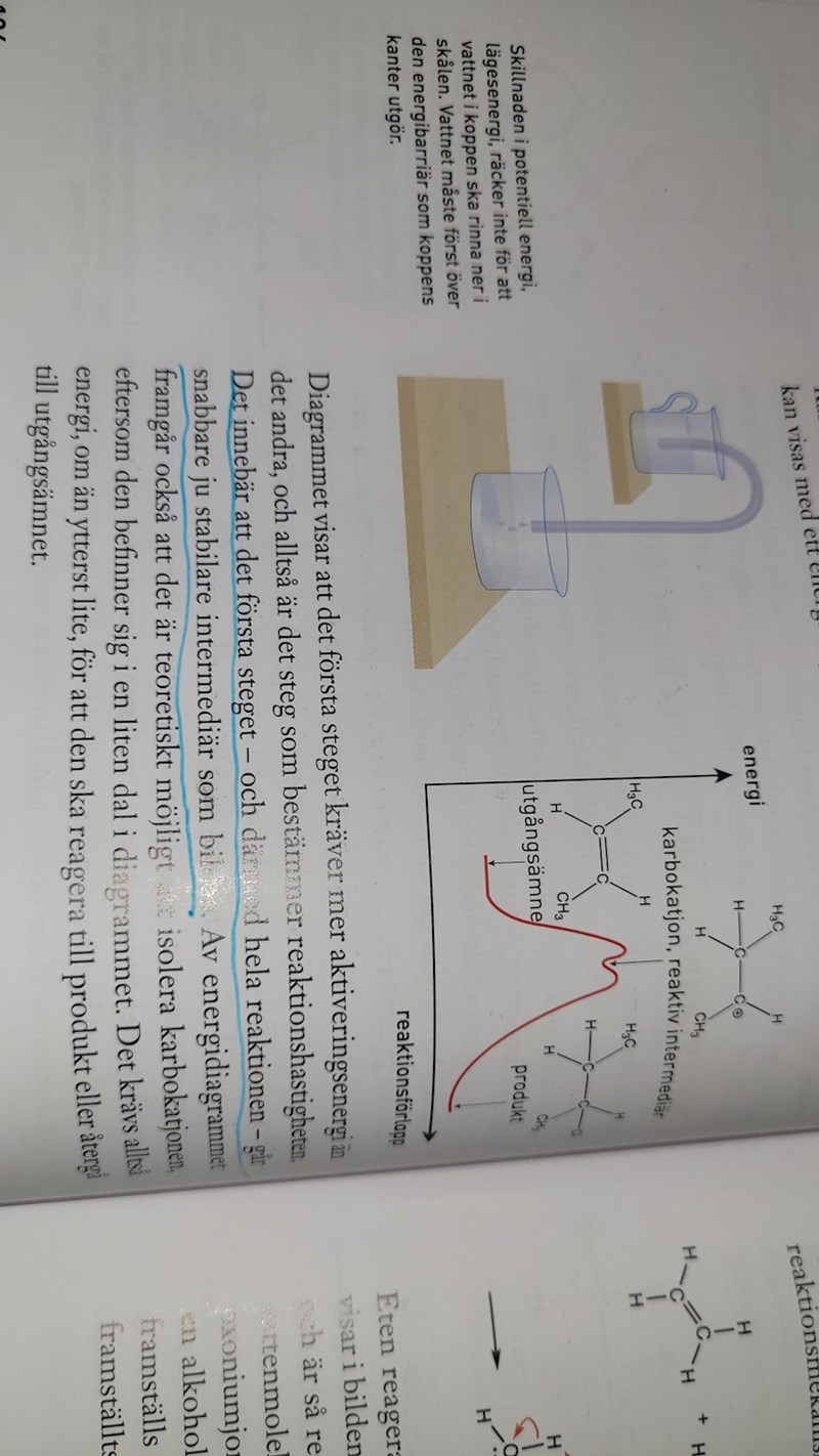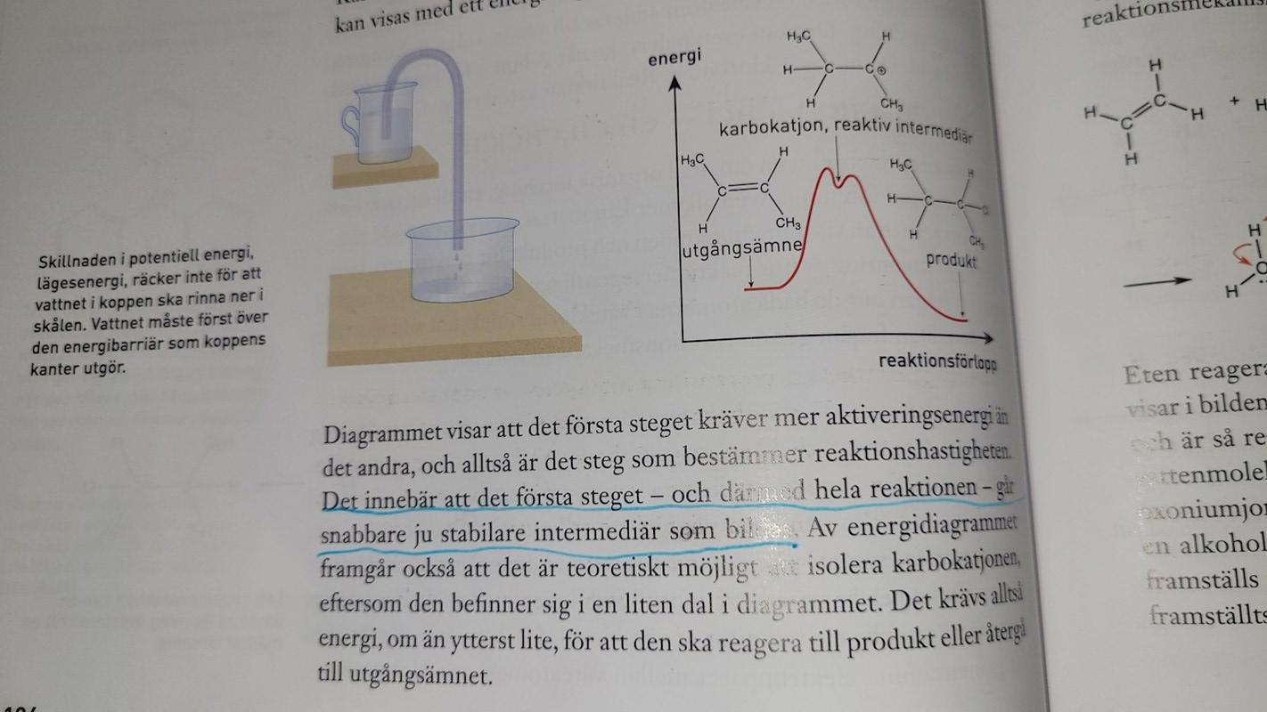 Jo det gör det nog, men varför krävs mindre energi för att bilda en mer stabil intermediär? Kommer fler antal väteatomer runt kolatomen där det kommer bildas en sekundär karbokatjon påverka att det krävs mindre energi på något sätt?
