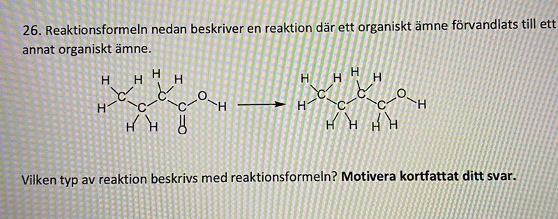 Ja, det stämmer, man har tagit bort syre och lagt till väte. I organisk kemi balanserar man ofta inte formlerna liga petigt som i oorganisk kemi, utan man brukar skriva ovanför reaktionpilen vad man använder för att få reaktionen att ske.