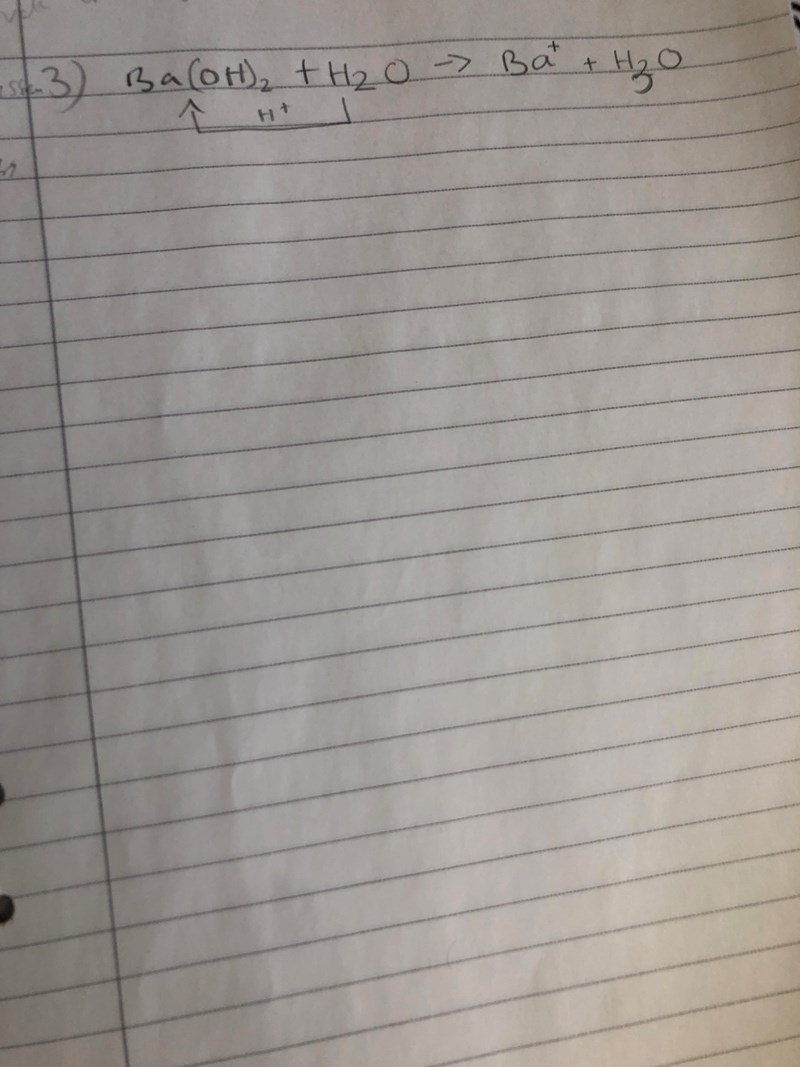 Nej, först löses det fasta saltet bariumhydroxid (som du har fått fram rätt formel för, bra!) i vatten så att det bildas bariumjoner och hydroxidjoner, och väteklorid reagerar med vatten så att det bildas oxoniumjoner och kloridjoner.