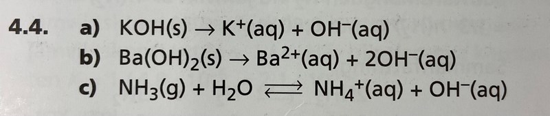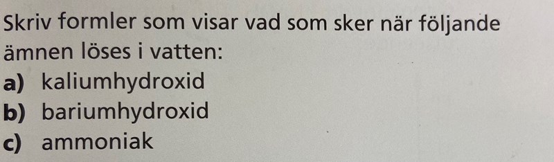 "ämnen löses i vatten" innebär ju att ämnet ska reagera med en vattenmolekyl, precis som formeln i c). Varför reagerar inte baserna i a) och b) med vatten?