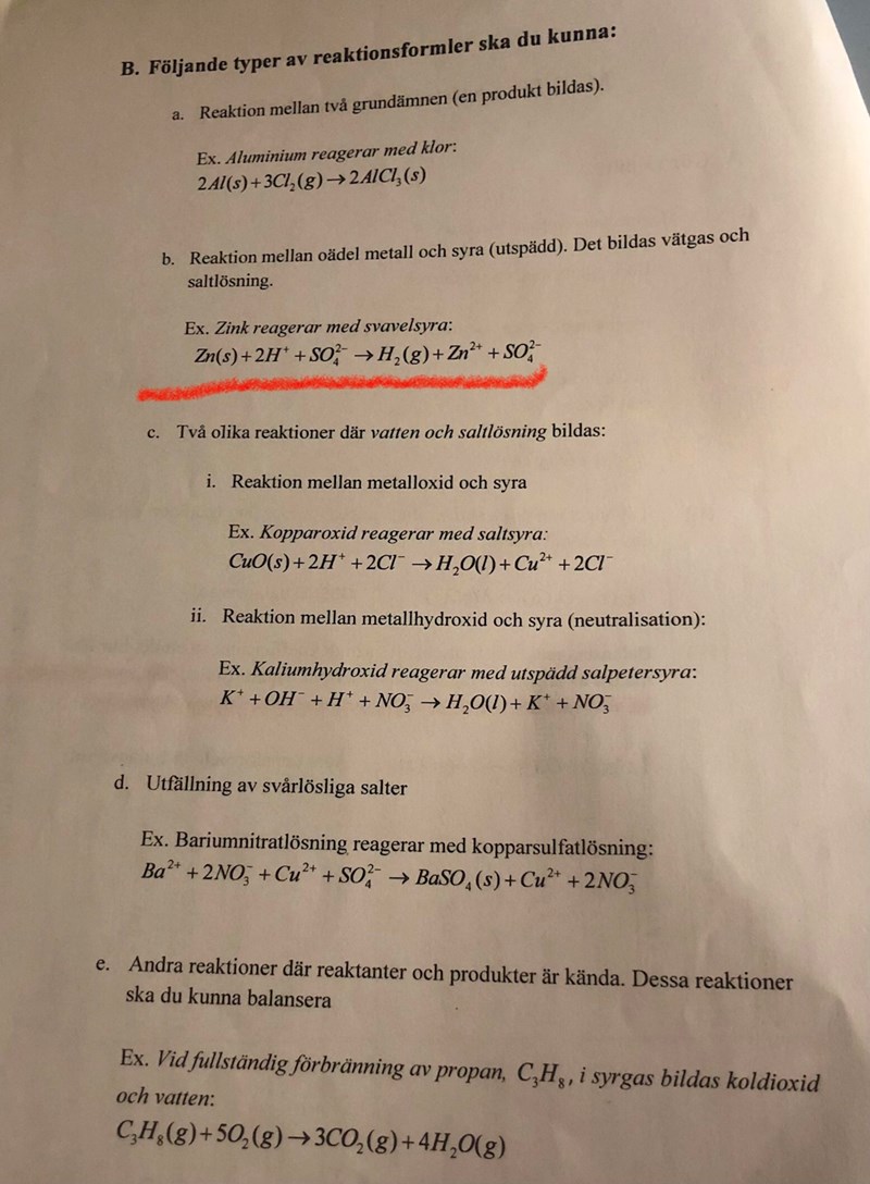 Nu slarvade jag lite och inte skrev med vilken form ämnena i reaktionerna stod i som t.ex. (s), (Aq) eller (g). Men detta ska finnas med när man skriver formlerna. Viktigt att komma ihåg vattnets betydelse (Aq) när vi skriver formlerna (vilket jag som sagt missade mitt pucko hehe). Hoppas detta hjälpte dig :)