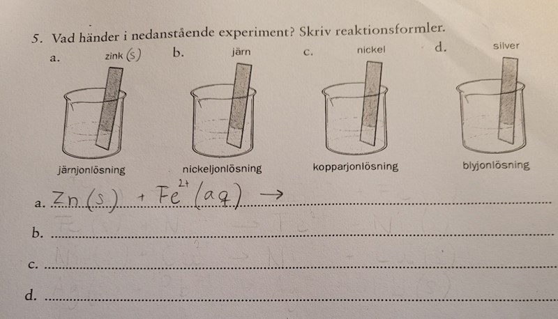 Ja, men då var jag tvungen att kolla upp vilket som är ädlast, järn eller nickel. Det bör framgå av ditt svar varför det är så.