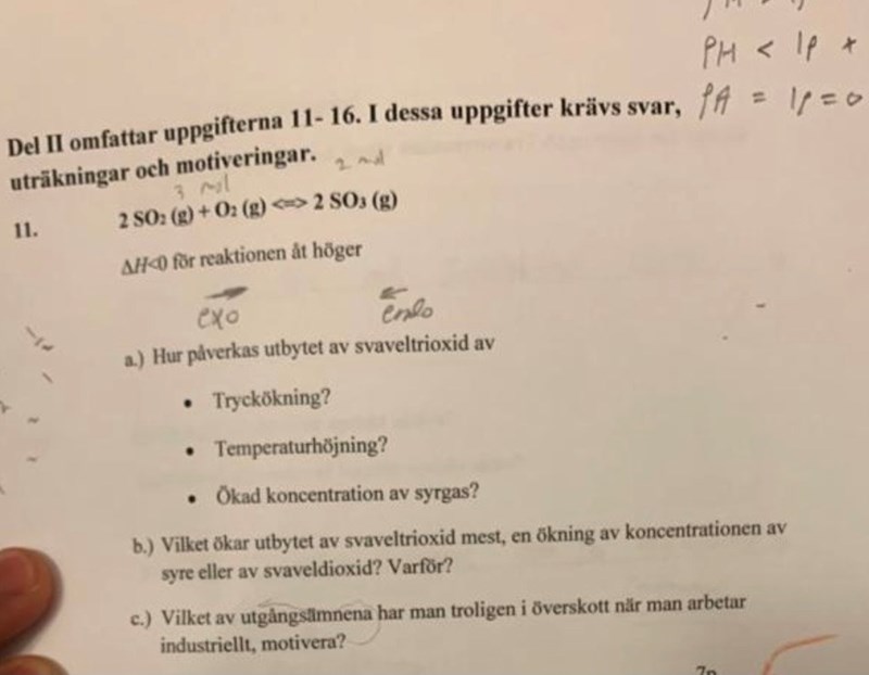 hedabd2 skrev:Så på så sätt ska jag svara, svaveldioxid men bara om vi dubblar koncentration av syrgas, BARA om vi dubblar koncentration av SO2 och allt annat är lika. Men hur är det med motivering för i frågan står det varför