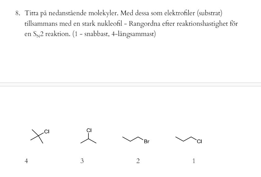 Hur ska man motivera vilken som reagerar snabbast med en annan starknukleofil ? Alla 4 har ju starkt elektronegativa atomer så jag antar att det har med strukturen att göra. Hur ska man tänka?