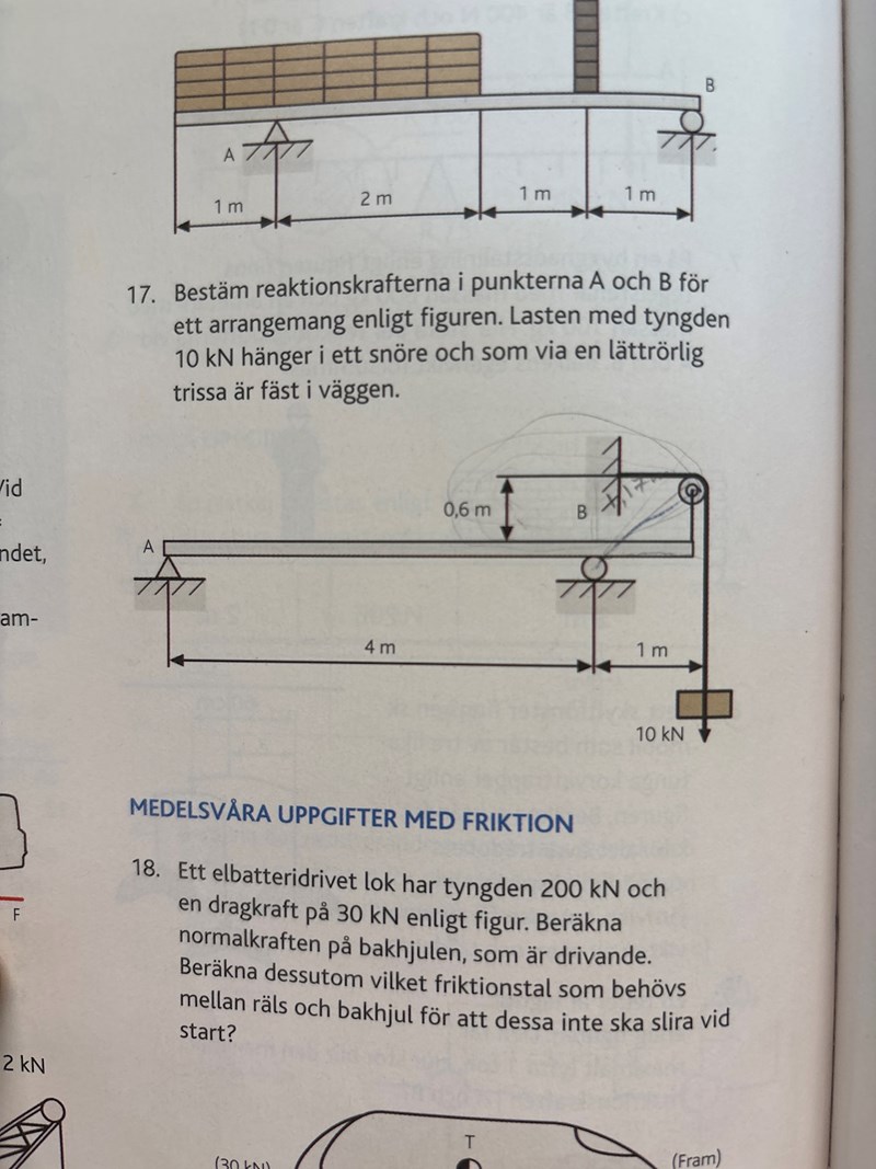 Reaktionskrafter A och B med en trissa