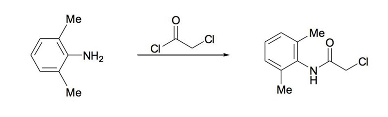 Hej! Har precis gjort en labb syntes av Lidokain och reaktionen ser ut såhär. (Lösningsmedel isättika, tillsatser är kloracetylklorid och natriumacetat)