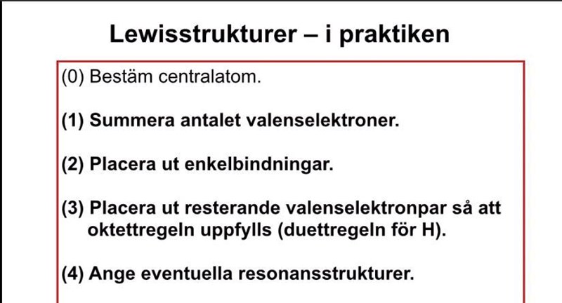 Okej, så första steget var att räkna ut antalet valenselektroner = 24 st.