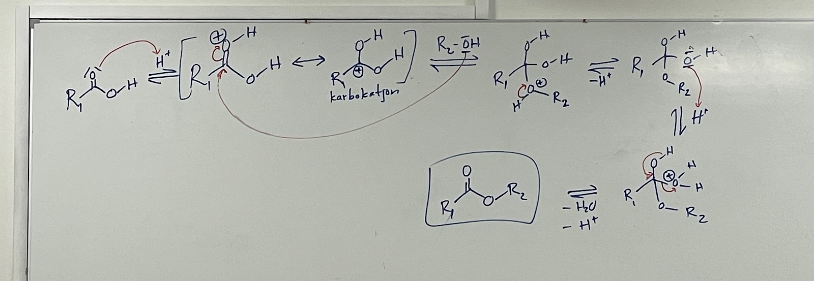 Den här bilden är lärarens mekanism där R1 ska vara pentansyran och R2 är etanol: