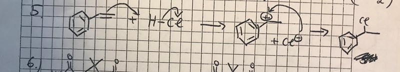 Men man behöver rita från kloret eftersom en pil från bindning till atom visar att det lossnar och inte vart det fastnar? Medan en pil från en bindning (som består av elektroner) till en atom blir som att man ritar från en laddning till atom. Och man ritar från en laddning till en atom när bindningar bildas. Kan man tänka så?