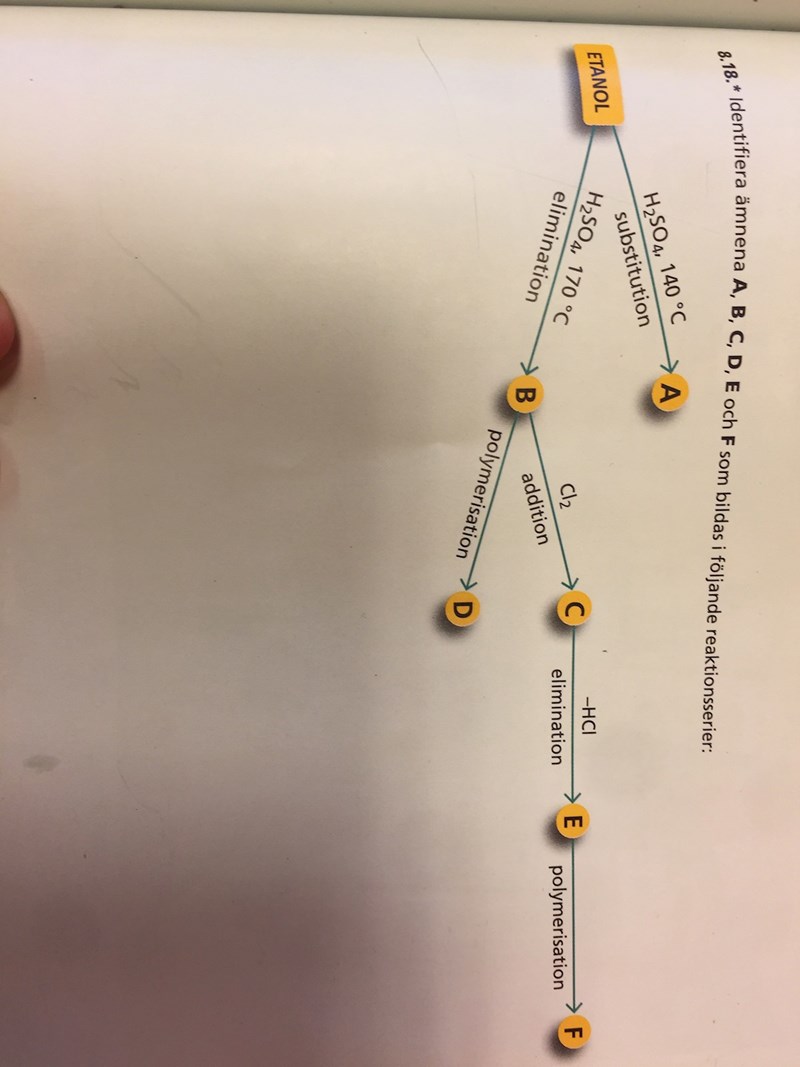 Hur menar du? Du har ämne i början, och sedan anges vilken reaktion som sker, t.ex. mellan reaktanten och A. Så rita upp ämnet och ta reda på vad som sker under reaktionen, så kan du få reda på vilket ämne som bildas.