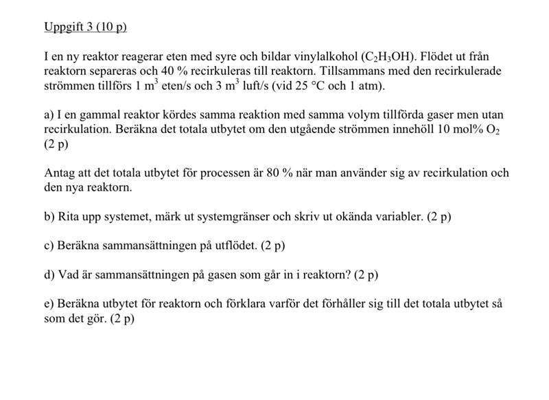 Generellt handlar det om att ställa upp ett antal massbalanser så att du får ett ekvationssystem som kan lösas för att ta reda på det som efterfrågas. Det är svårt att ge mer hjälp än så utan att se dina svar på a-c.