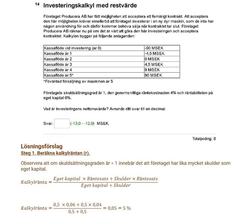 Okej, jag tror jag förstår nu. Skuldsättningsgraden är 1, och då S + EK = 1 (skuldsättningsgraden) så fördelas dem jämt? Men brukar det vara så att skulder + eget kapital = skuldsättningsgraden? Jag trodde skuldsättningsgraden bara var skulderna/eget kapital?