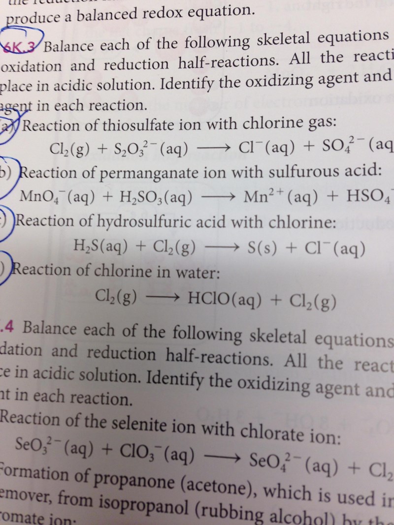 "balansera följande sketeltal equations genom att använda reduktions och oxidations halv cells reaktioner. alla reaktionerna tar plats i sur miljö"