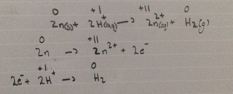 För att se om det sker en reaktion så måste du balansera halvcellerna, dvs. reduktionshalvcellen och oxidationshalvdellen. För att kunna veta om en reaktion kommer att ske eller inte så måste du kolla på värdet av potentialskillnaden som uppstår mellan katod och anod. Oxidationstalet på en jon är dess laddning.