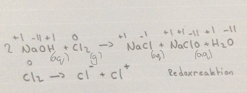 Såhär skrev jag att reaktionen såg ut i första uppgiften.
