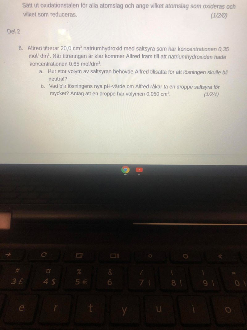 jag behöver hjälp på uppgift B. Jag vet inte hur jag tar fram de nya pH värdet. Jag kan ta reda på förändring i oH via substansmängd och koncentration men inte ett nytt pH värde. Hur tar jag mig till.