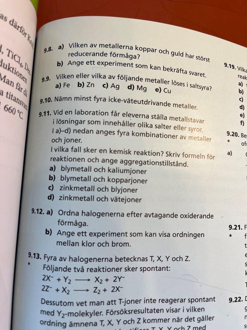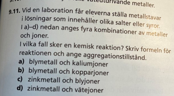 Hur ska man tänka på 9.11? Så som jag fattar det är kalium mer reducerande vilket borde betyda att den lättare släpper ifrån sig elerktroner än bly och därmed borde de reagera eller är det fel?