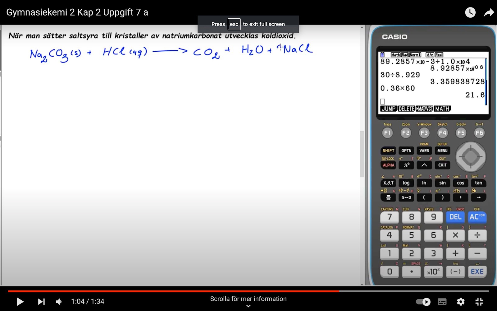 Reaktionsformeln i uppgiften är inte balanserad - det finns två natrium och ett väte på vänstersidan men två väte och en natrium på högersidan.