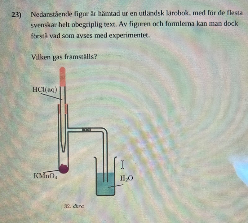Manganet i permanganatjoner har ett mycket högt oxidationstal, d v s de reduceras lätt. Då behöver något annat oxideras. Det som kan oxideras i saltsyra är antingen vatten, oxoniumjoner eller kloridjoner. Vilket av dessa är lättast att oxidera? Kolla i en normalpotentialtabell!