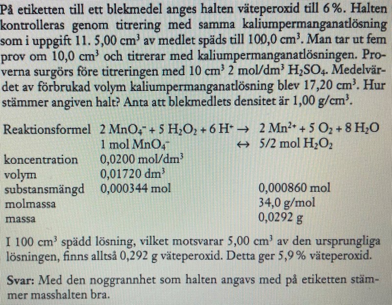 Vet man att reaktionen är så sur då H2O2 är en stark syra. Men förstår dock fortfarande inte varför att syran är stark gör att man inte behöver ta hänsyn till den borde det inte snarare gör att den påverkar desto mer? Förstår fortfarande inte riktigt det där med densiteten, varför behöver man byta enhet om densiteten varit annorlunda (är inte det enbart värdet på densiteten som varit annorlunda och inte enheten)?