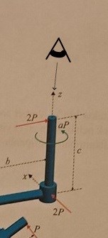 Hur listade du ut att kraftparet pekar moturs? sker all rotation i x-axeln där origo ligger? Jag ser inte det riktigt. En annan sak är hur man ska tänka på tecknen för momenten aP samt bP.  En tredje sak är varför du ändrar tecken på mina kraftmoment på samtliga punkter. Vi kanske ska fokusera på ett moment i taget så att vi får detta rätt till istället för flera på en gång. Jag tror c är negativ om vi tänker oss på z-axeln men du ändrade till plus?