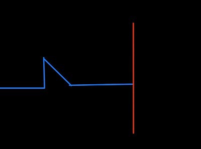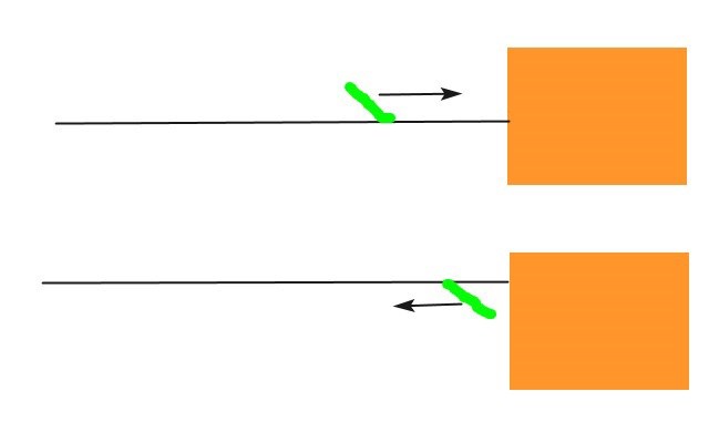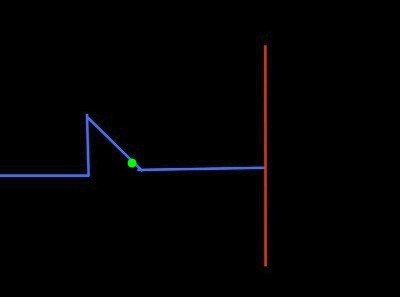 Är det där en "halv reflektion"? Dvs ena delen har reflekterats och vänt medan den övre delen håller fortfarande på att "gå in" mot väggen för att sedan reflekteras?